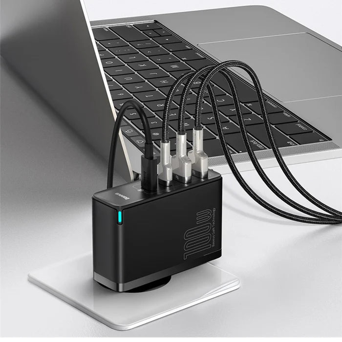 - شحن سريع بقوة 100 وات: يوفر شحنًا سريعًا وفعالًا لجميع أجهزتك بتقنية GaN المتقدمة، مما يضمن توصيل الطاقة بسرعة وفعالية.