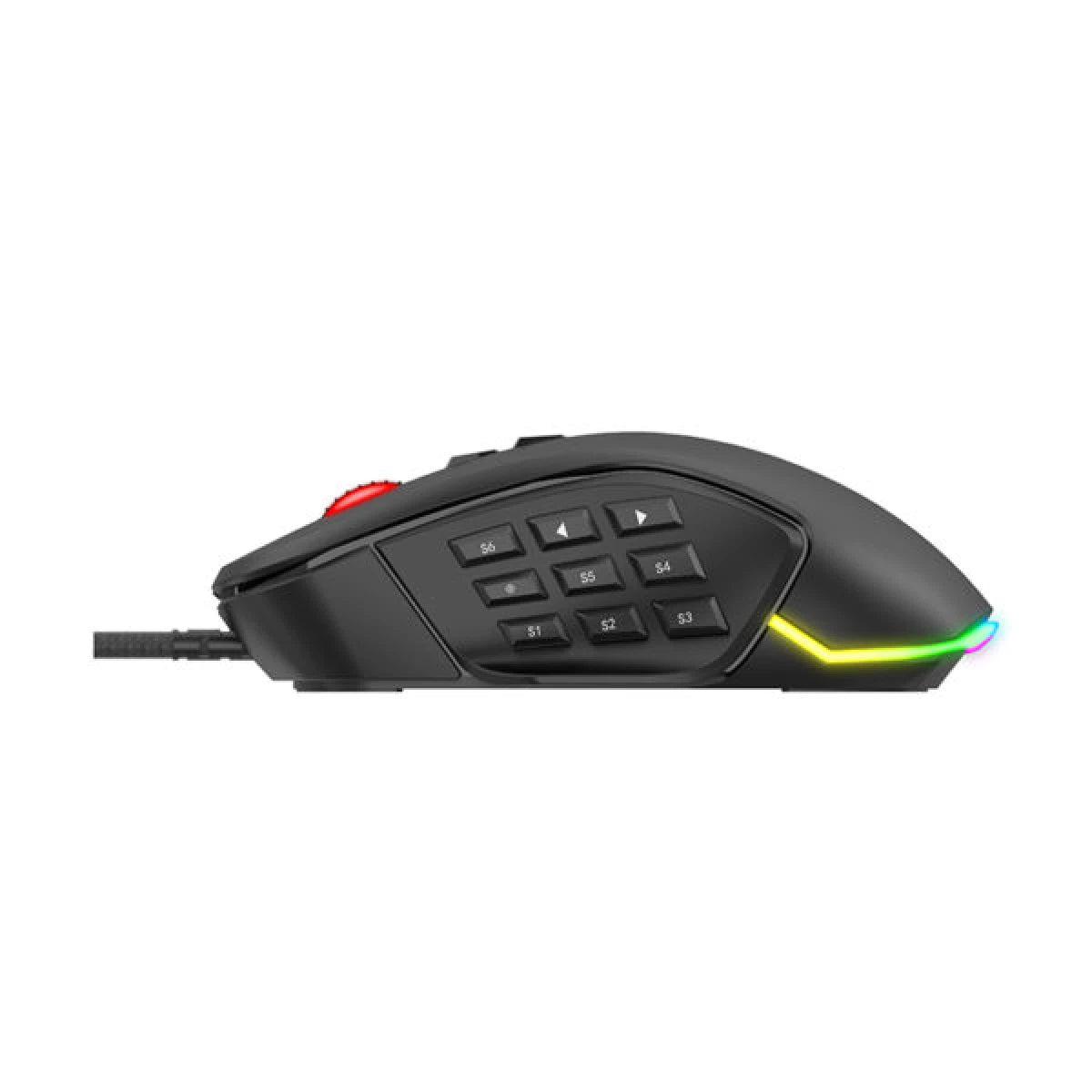 - من بين الميزات البارزة للفأرة MS900 هي إضاءتها RGB القابلة للتخصيص، مع 16 مليون تأثير ضوئي ملون. باستخدام البرنامج المقدم، يمكنك تخصيص الألوان لتتناسب مع إعدادات الألعاب أو أسلوبك الشخصي، مما يخلق تجربة غامرة بصريًا. تم تجهيز الماوس بستة مصابيح LED جذابة تتوافق مع إعدادات مختلفة، مما يوفر جمالية ديناميكية مع تحسين بيئة الألعاب الخاصة بك.