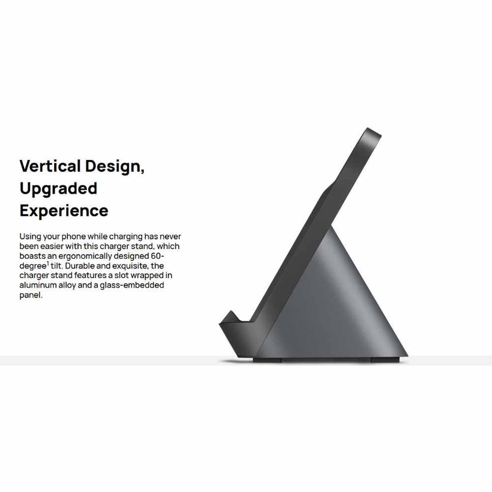 تصميم تبريد عمودي جديد تمامًا، ومروحة تبديد الحرارة المدمجة الفعالة، وفتحة تهوية في الجزء السفلي، كلها تعمل معًا للحفاظ على حامل الشاحن والهاتف باردين أثناء الشحن.