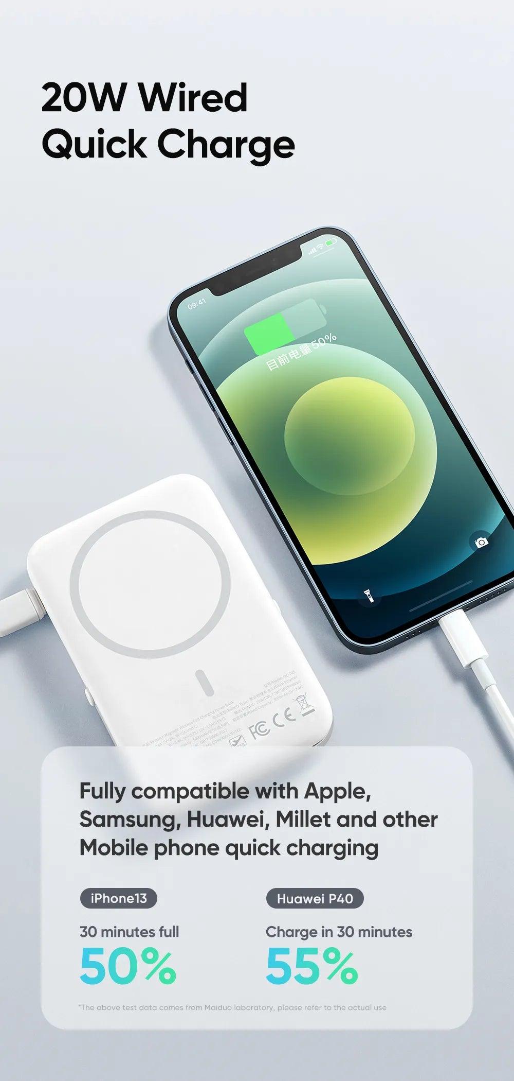 بفضل سعتها القوية التي تبلغ 5000 مللي أمبير في الساعة، توفر لك بطارية الشحن المغناطيسية هذه شحنًا سريعًا وموثوقًا به للهواتف الذكية والملحقات، مما يضمن لك الاتصال دائمًا. يتوافق تصميمها المغناطيسي المبتكر بسهولة مع الأجهزة المتوافقة، مما يجعل الشحن سهلاً للغاية - لا مزيد من العبث بالكابلات!