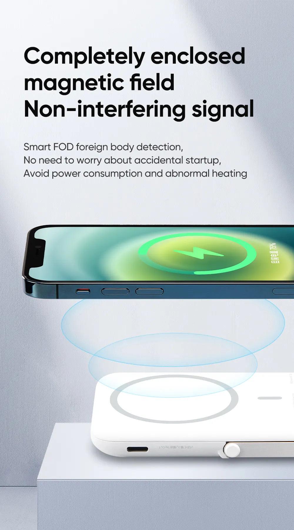 قل وداعًا لقلق البطارية ومرحبًا بالراحة مع بنك الطاقة المغناطيسي مكدودو 5000 مللي أمبير في الساعة! تم تصميم بنك الطاقة اللاسلكي الأنيق باللونين الأبيض والرمادي الأنيقين للحفاظ على شحن أجهزتك أثناء التنقل، حيث يجمع بسهولة بين الشكل والوظيفة.