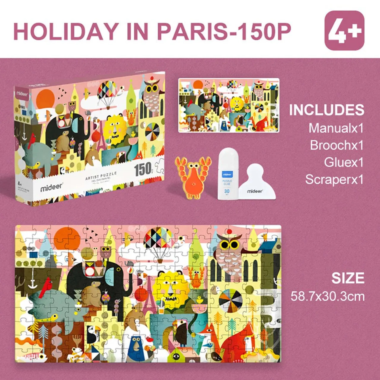استمتع بسحر وسحر باريس مع Artist Puzzle Holiday! تتميز هذه الأحجية المكونة من 150 قطعة بعمل فني جميل يعرض المعالم والمعالم السياحية الشهيرة في مدينة الحب. مثالية لعشاق الألغاز ومحبي الفن على حد سواء، فهي طريقة ممتعة وجذابة للاسترخاء والراحة خلال موسم العطلات. احصل عليه الآن وأضف لمسة من الأناقة الباريسية إلى منزلك.