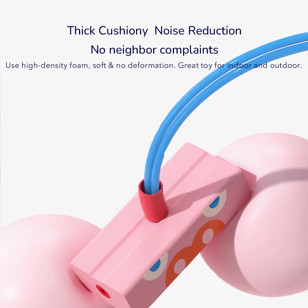 - صرير ممتع: يصدر صوتًا مضحكًا مع كل قفزة، مما يحفز اهتمام الطفل باللعب.