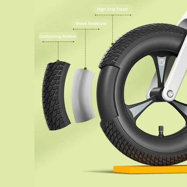 مميزات مدروسة: مركز ثقل منخفض، ومقابض محكمة الغلق، ومقعد مبطن، وإطارات تمتص الصدمات تجعل هذه الدراجة المتوازنة فريدة من نوعها.