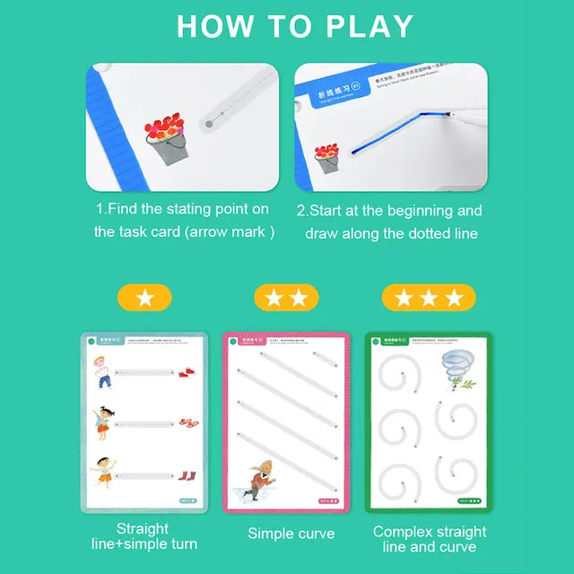 ارفع مهارات طفلك في الرسم مع ميدير لتتبع الخطوط! تساعد مجموعة التتبع هذه على تطوير المهارات الحركية الدقيقة والتنسيق بين اليد والعين. مع الصور الملونة والخطوط سهلة المتابعة، سيستمتع طفلك أثناء تعلم الرسم. مثالية للأعمار من 3 سنوات فما فوق.