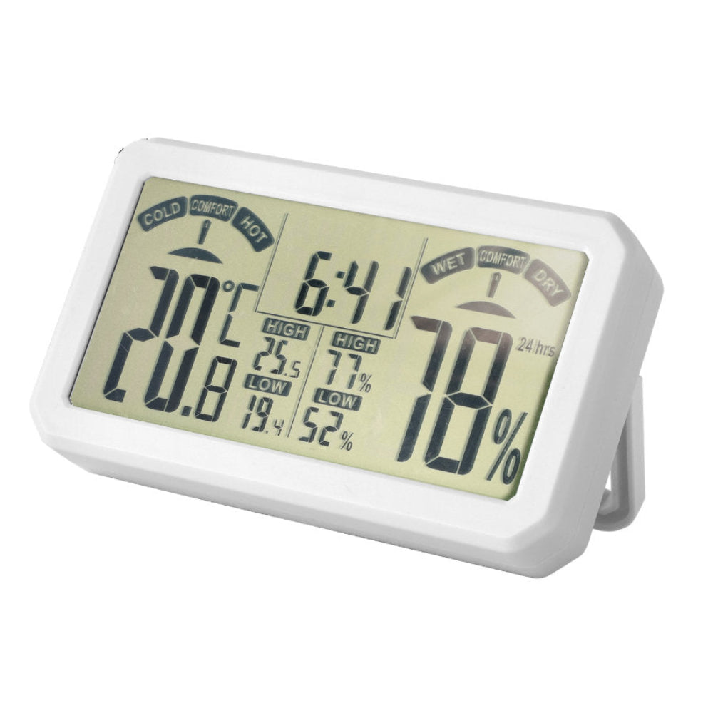 - جهاز قياس الرطوبة ودرجة الحرارة الرقمي مع ساعة من جاديفر