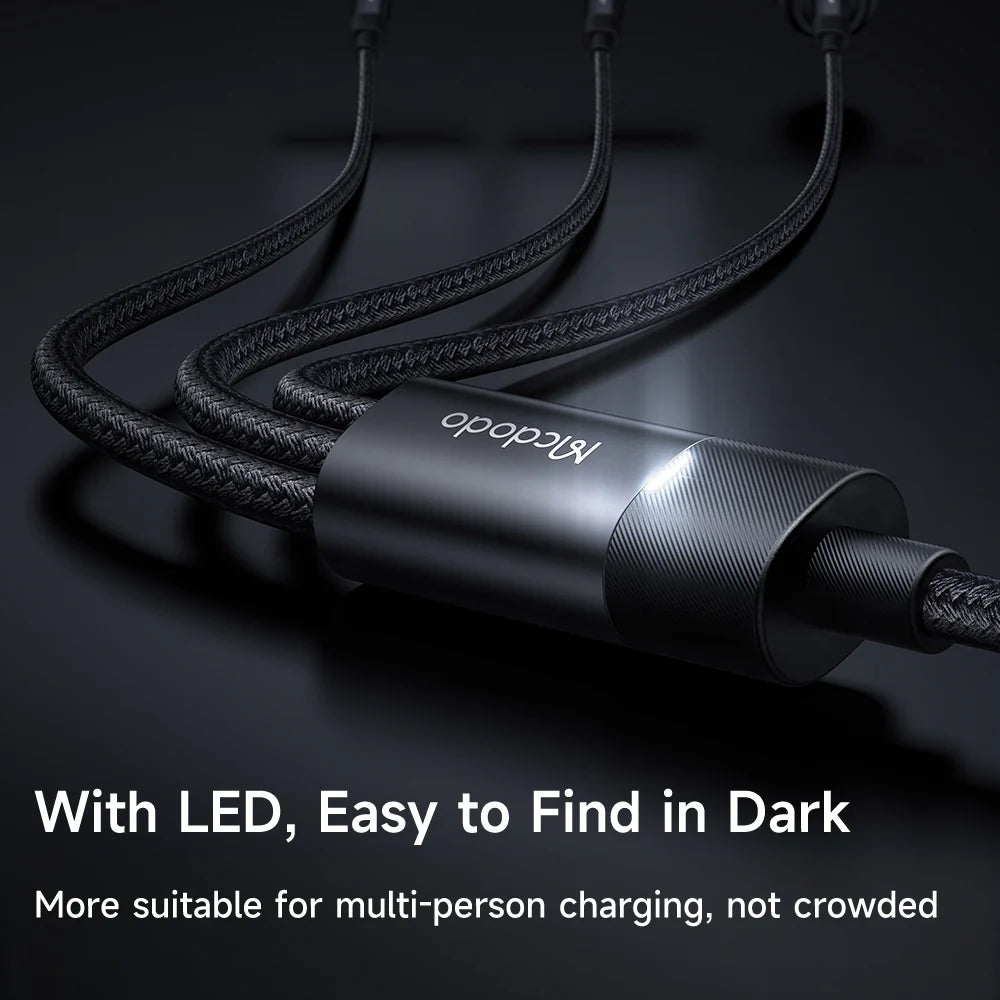 - كابل مكدودو مضفر من النايلون 3 في 1 مع مصباح ليد 1.2 متر - أسود