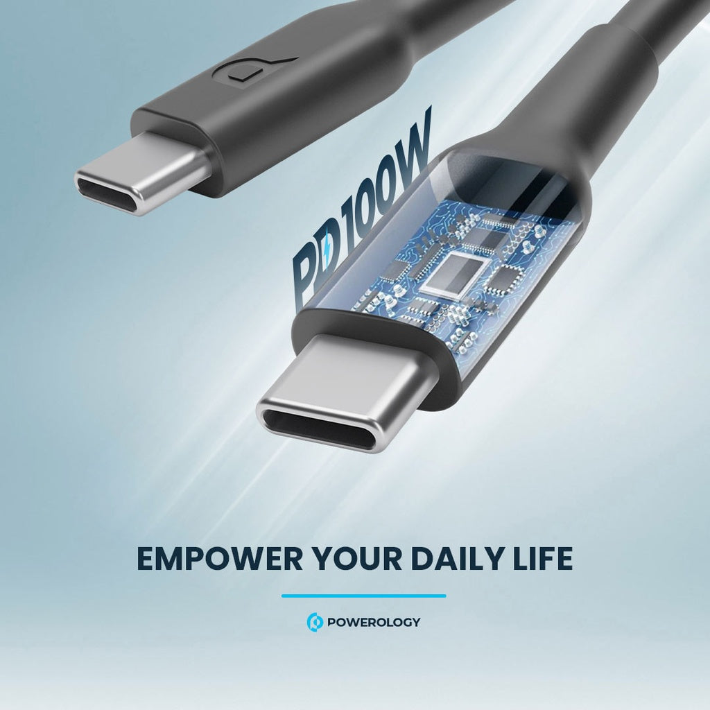 - كيبل Powerology تايب C إلى تايب C شحن سريع ومتين