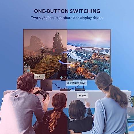 مفتاح HDMI UGREEN 2 مدخل 1 مخرج مع قدرة تبديل KVM هو الحل المثالي لإدارة عدة أجهزة HDMI. يتيح لك هذا المفتاح المتعدد الاستخدامات التبديل بسلاسة بين مصدرين HDMI والتحكم فيهما باستخدام إعداد واحد من لوحة المفاتيح والشاشة والفأرة. مثالي للاستخدام المنزلي والمكتبي، يعزز تجربتك الإعلامية بسهولة.