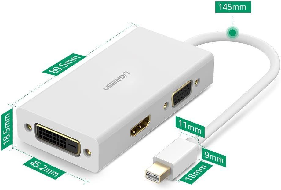 قم بترقية اتصالك مع محول UGREEN Mini DP إلى HDMI/VGA/DVI. تم تصميم هذا المحول الأنيق باللون الأبيض لتوفير حل موثوق ومتعدد الاستخدامات لتوصيل الأجهزة ذات منفذ Mini DisplayPort (Mini DP) إلى مختلف مدخلات العرض.