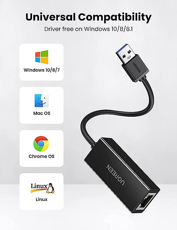 1 × محول Ethernet UGREEN USB 3.0 جيجابت (أسود)