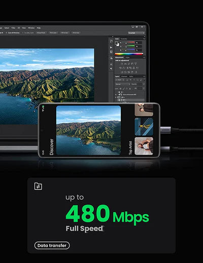 قم بشحن الهواتف والأجهزة اللوحية وغيرها من أجهزة USB-C بسرعة. - نقل البيانات بسرعة 480 ميجابت في الثانية