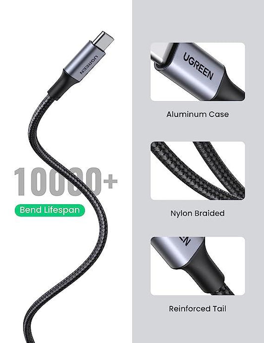 كابل يو إس بي-سي 3 أمبير للشحن السريع من يوجرين، مصنوع من النايلون المضفر