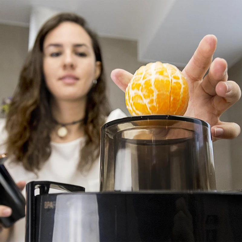 يسمح لك مجرى الفاكهة الكبير بإدخال الفاكهة كاملة لمزيد من الراحة.