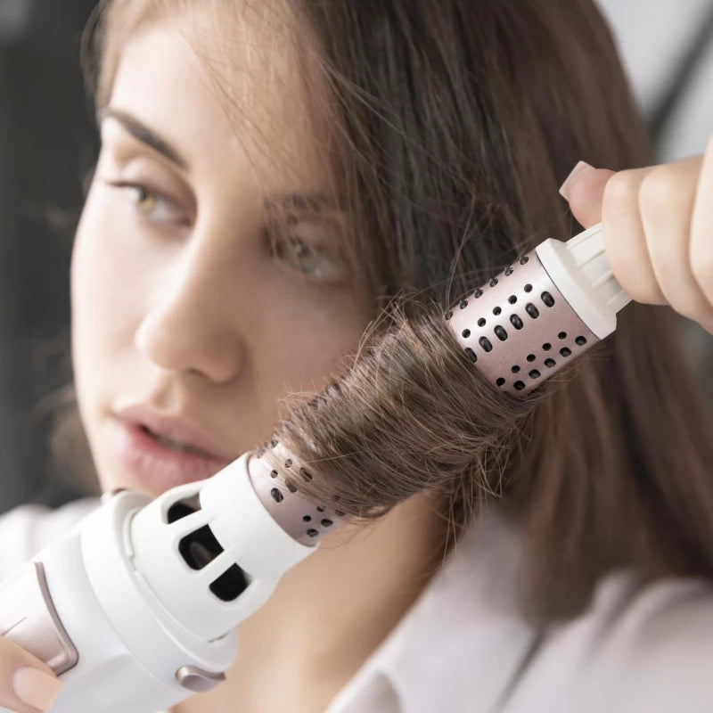 مع جهاز Cecotec CeramicCare 5in1 Pro ، يمكنكِ تجفيف شعركِ، وتصفيفه، وتمليسه، وتجعيده، وإضافة حجم إليه بكل سهولة - كل ذلك مع الحفاظ على لمعانه، وصحته، وخلوه من التجعد.