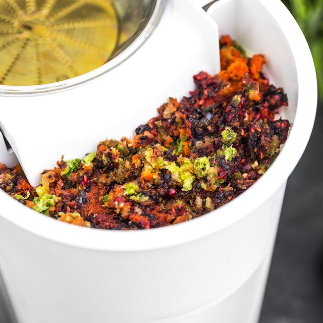 بفضل محركها القوي بقوة 1300 واط وقرصها المطلي بالتيتانيوم ، تضمن العصارة استخلاصًا سريعًا وعالي الجودة للعصير ، بينما يسمح أنبوبها XXL مقاس 75 مم بعصر الفواكه والخضراوات كبيرة الحجم دون الحاجة إلى تقطيعها مسبقًا.
