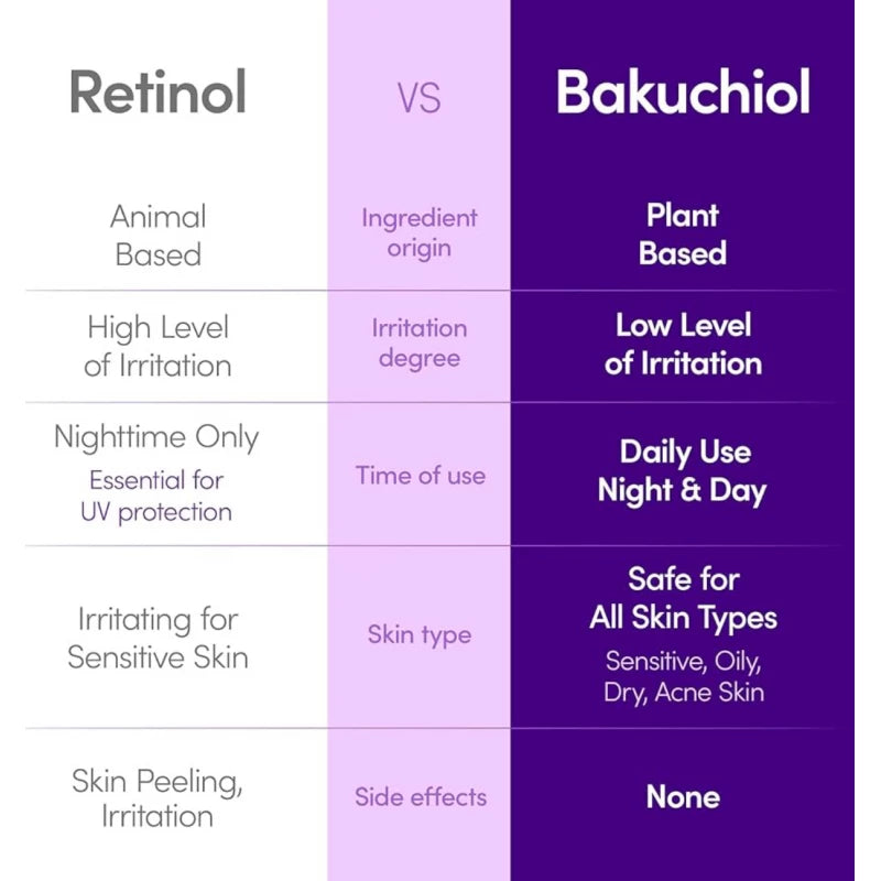 - لا يسبب أي تهيج - على عكس الريتينول القاسي، يوفر الباكوشيول نتائج فعالة دون تقشير أو احمرار أو حساسية.