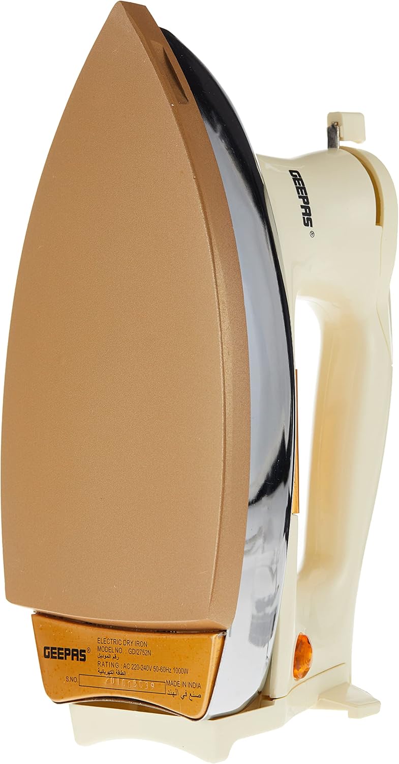 احصلي على ملابس مكوية بشكل مثالي بكل سهولة باستخدام مكواة جيباس الجافة GDI2752. تجمع هذه المكواة البيضاء الكلاسيكية بين أداء قوي بقدرة 1000 واط وقاعدة سيراميك ذهبية ممتازة غير لاصقة، مما يجعل الكي سهلاً على جميع أنواع الأقمشة