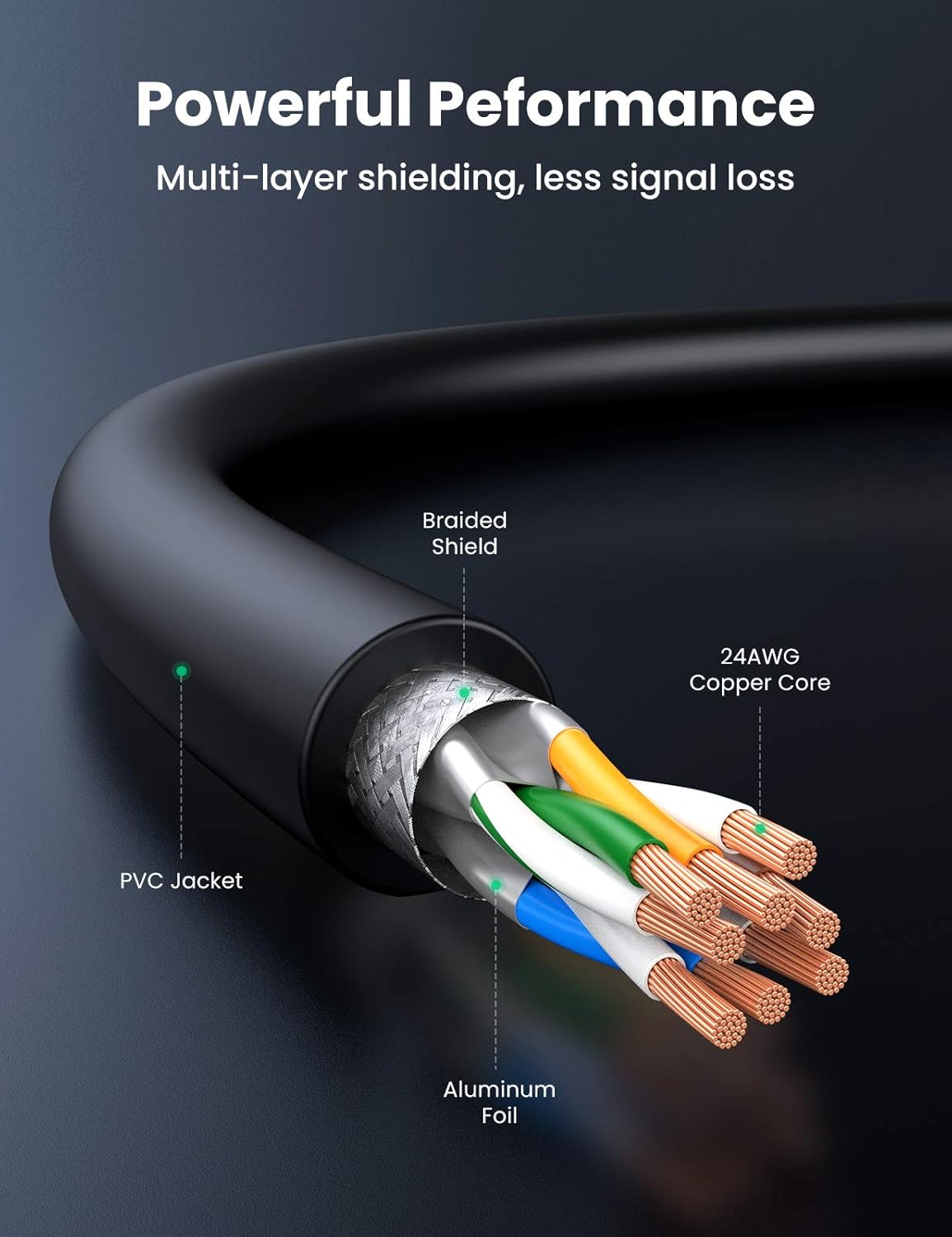 يتميز هذا الكابل عالي الجودة بطبقة حماية من التداخل الكهرومغناطيسي، مما يضمن إشارات نقية ونقل بيانات مستقر. متوافق مع جميع أجهزة RJ45، بما في ذلك أجهزة التوجيه، وأجهزة الكمبيوتر، وأجهزة الألعاب، وأجهزة البث الذكية.