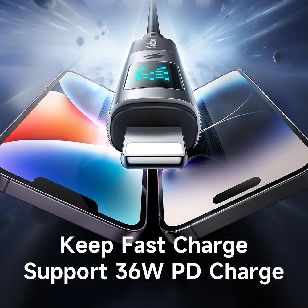 - كابل مكدودو يو إس بي سي إلى لايتينج بي دي 36 وات مع شاشة عرض الطاقة - أسود