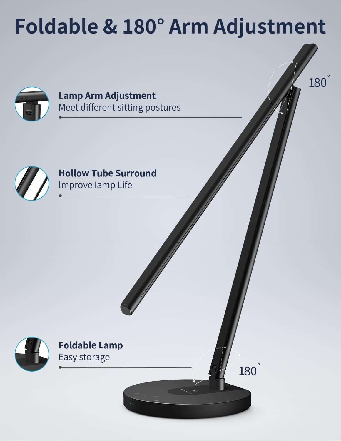 قم بتعزيز مساحة عملك باستخدام مصباح مكتب موماكس LED. يجمع بين الإضاءة الحديثة المريحة للعين وشاحن لاسلكي سريع بقوة 10 وات، وهو الحل الأمثل لاحتياجات مكتبك أو دراستك.