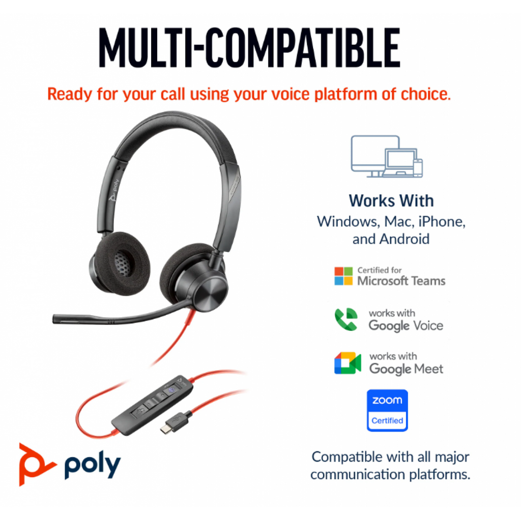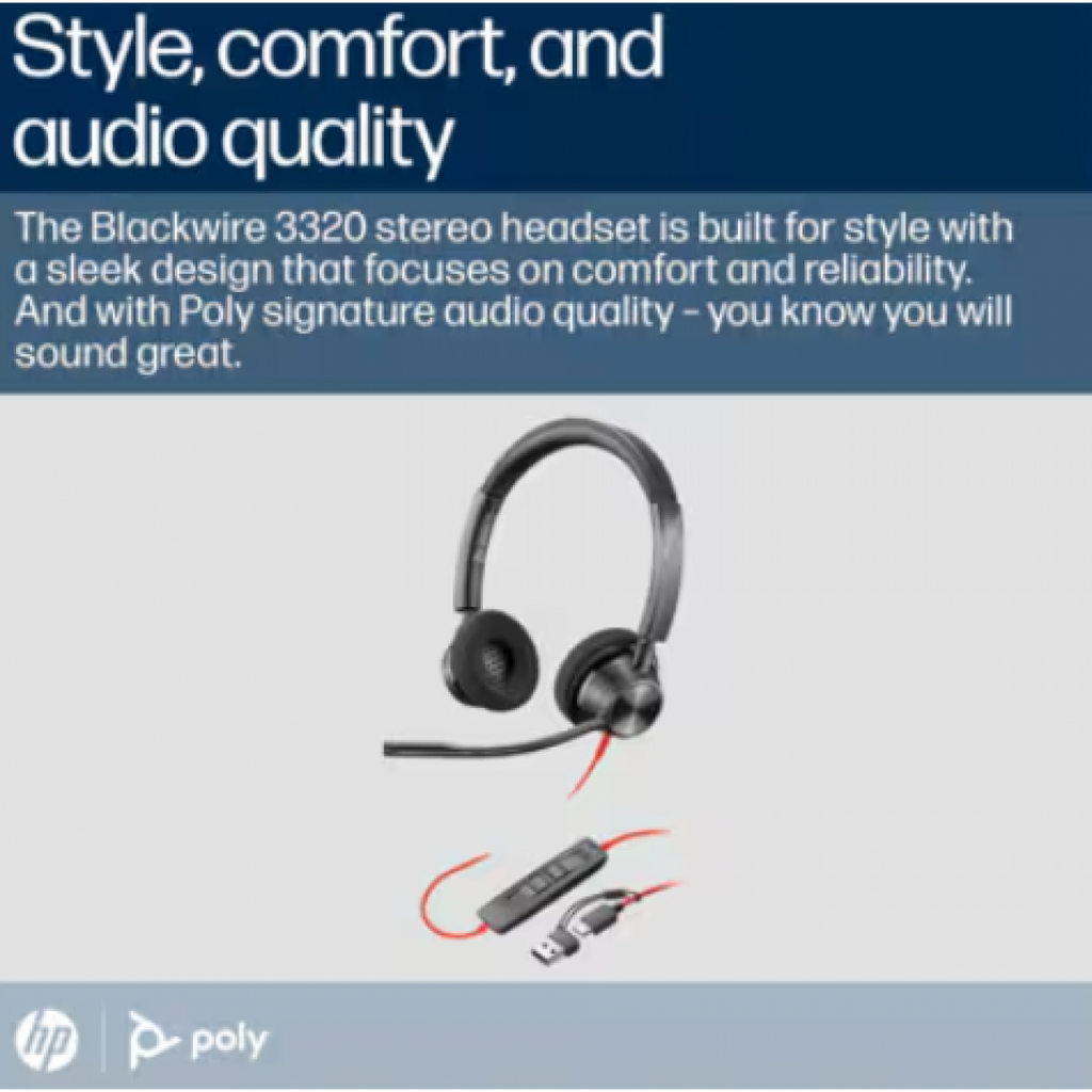 اطلب سماعة Poly Blackwire 3320 USB-C مع ميكروفون عازل للضوضاء الان, واحصل على توصيل بنفس اليوم ومجاني بداخل عمان، وتوصيل خلال 24 ساعة للمحافظات والمناطق الاخرى.