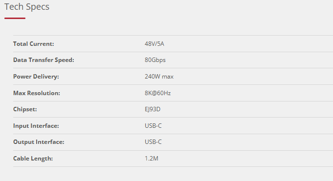 Promate PowerBolt5-80G 80Gbps USB4 Cable - 240W PD
