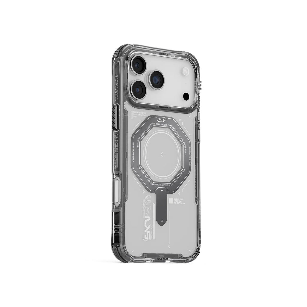 - يجمع غطاء SKINARMA MAGMA لهاتف iPhone 17 Pro بين التصميم الميكانيكي والحماية الشاملة . يتميز بتصميم شبه شفاف ، وحلقة شحن مغناطيسية معدنية ، وأزرار جانبية من الألومنيوم ، ليوفر جمالاً وأمانًا في آنٍ واحد.