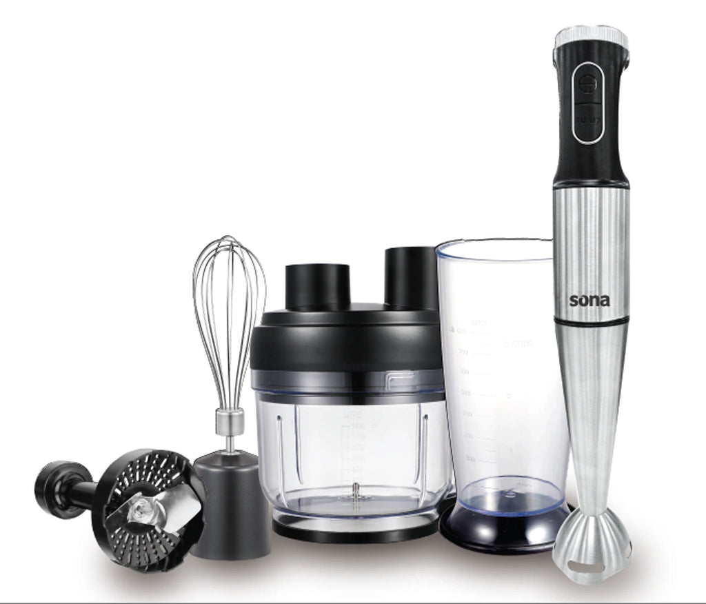 استمتع بأقصى درجات التنوع في مطبخك مع خلاط سونا اليدوي بقوة 1500 واط ، المزود بوعاء محضر طعام سعة 2.5 لتر وشفرات مطلية بالتيتانيوم لضمان متانة فائقة ونتائج سلسة.