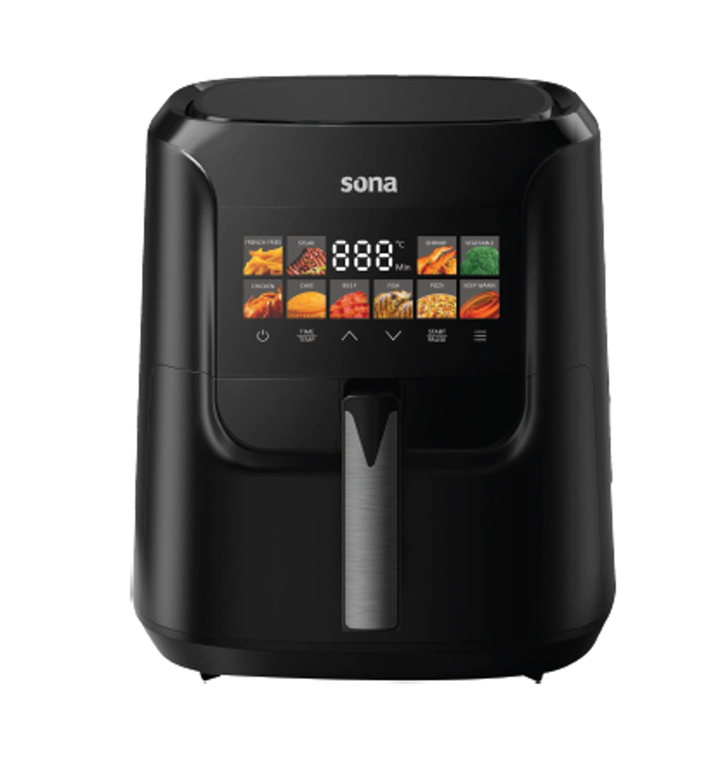 استمتع بوجبات صحية ولذيذة مع مقلاة سونا الهوائية سعة 8 لتر ، المصممة للعائلات والكميات الكبيرة، مع زيت أقل بنسبة تصل إلى 90%.