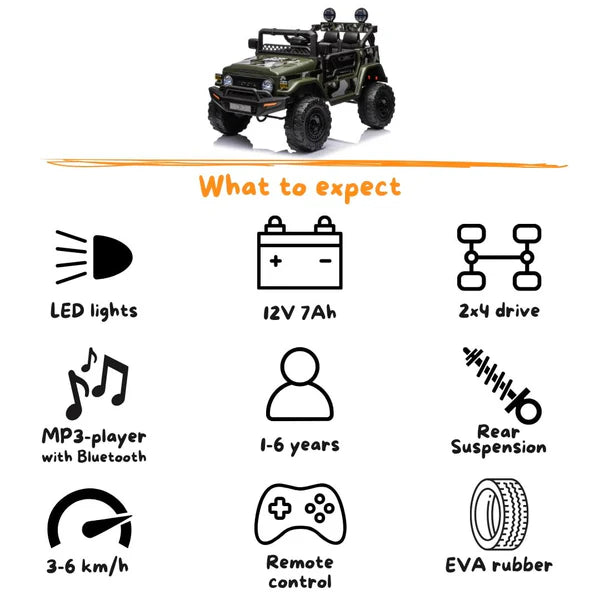 تصميم مرخص رسميًا، وأربعة محركات قوية، وبطارية ١٢ فولت ٤.٥ أمبير/ساعة، وجهاز تحكم عن بُعد لرحلة ممتعة وآمنة.