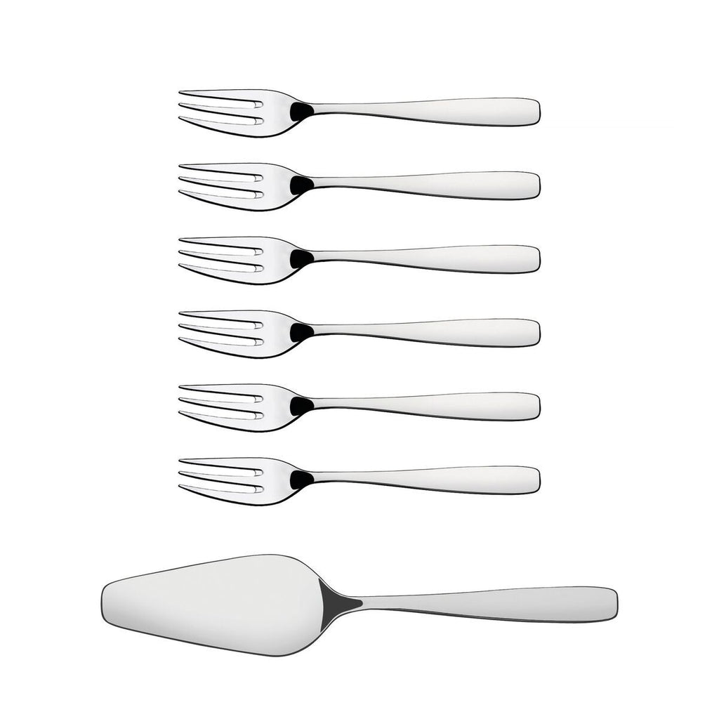 يتضمن الطقم أدوات أساسية مثل ملاعق التقديم والشوك وأدوات الخلط، مما يجعل تحضير الكيك وتقديمه سهلاً وأنيقًا.