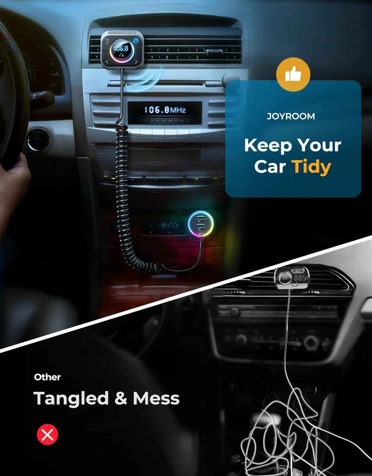 - Joyroom 30W Bluetooth Car Transmitter Charger & Music Hub - Black