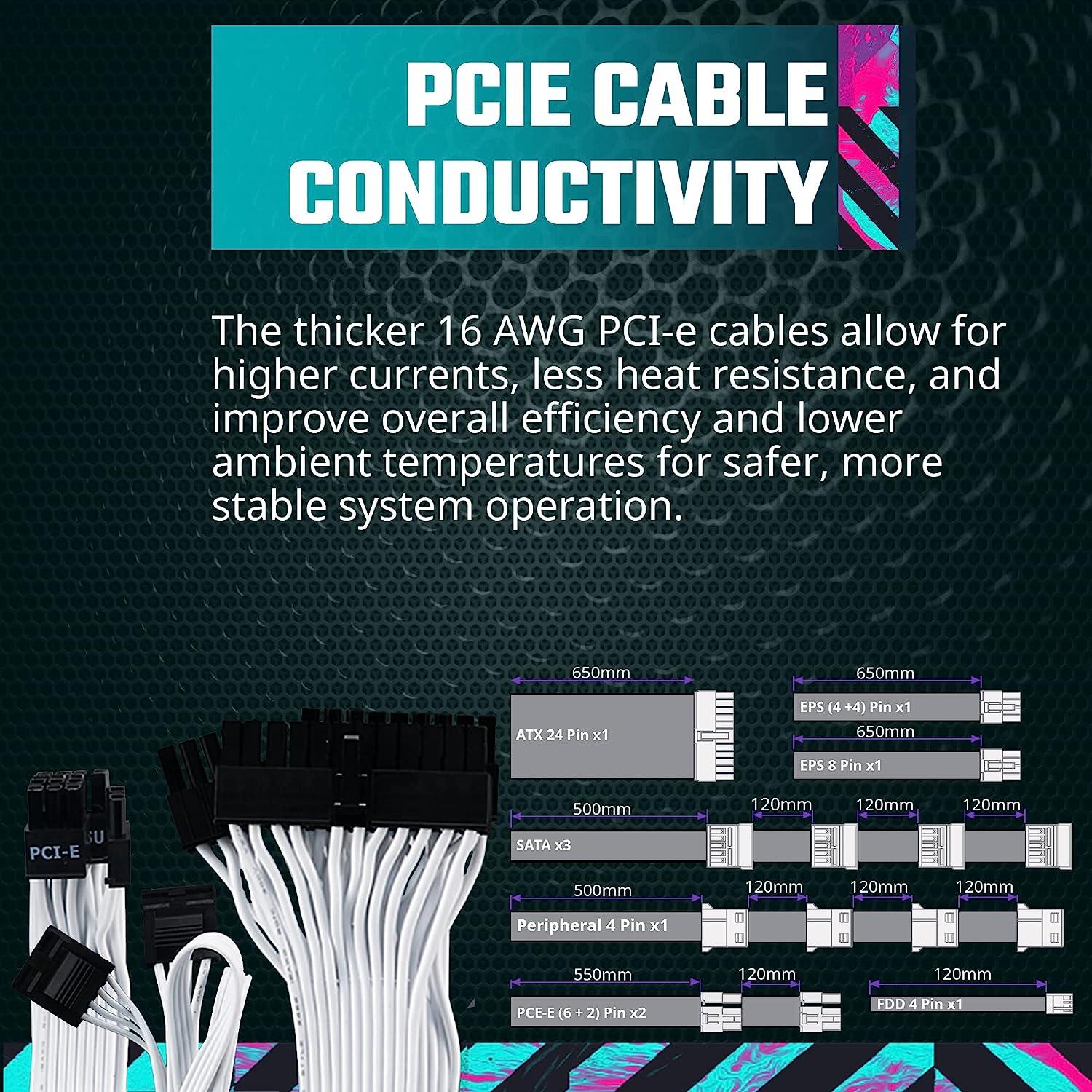 - 16 AWG PCI-e Cables : The thicker 16 AWG PCI-e cables allow for higher currents, thereby improving both efficiency and safety.