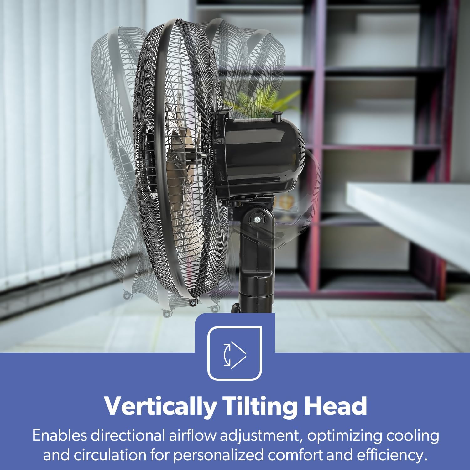 Adjustable height & tilt-back head to direct air where you want.