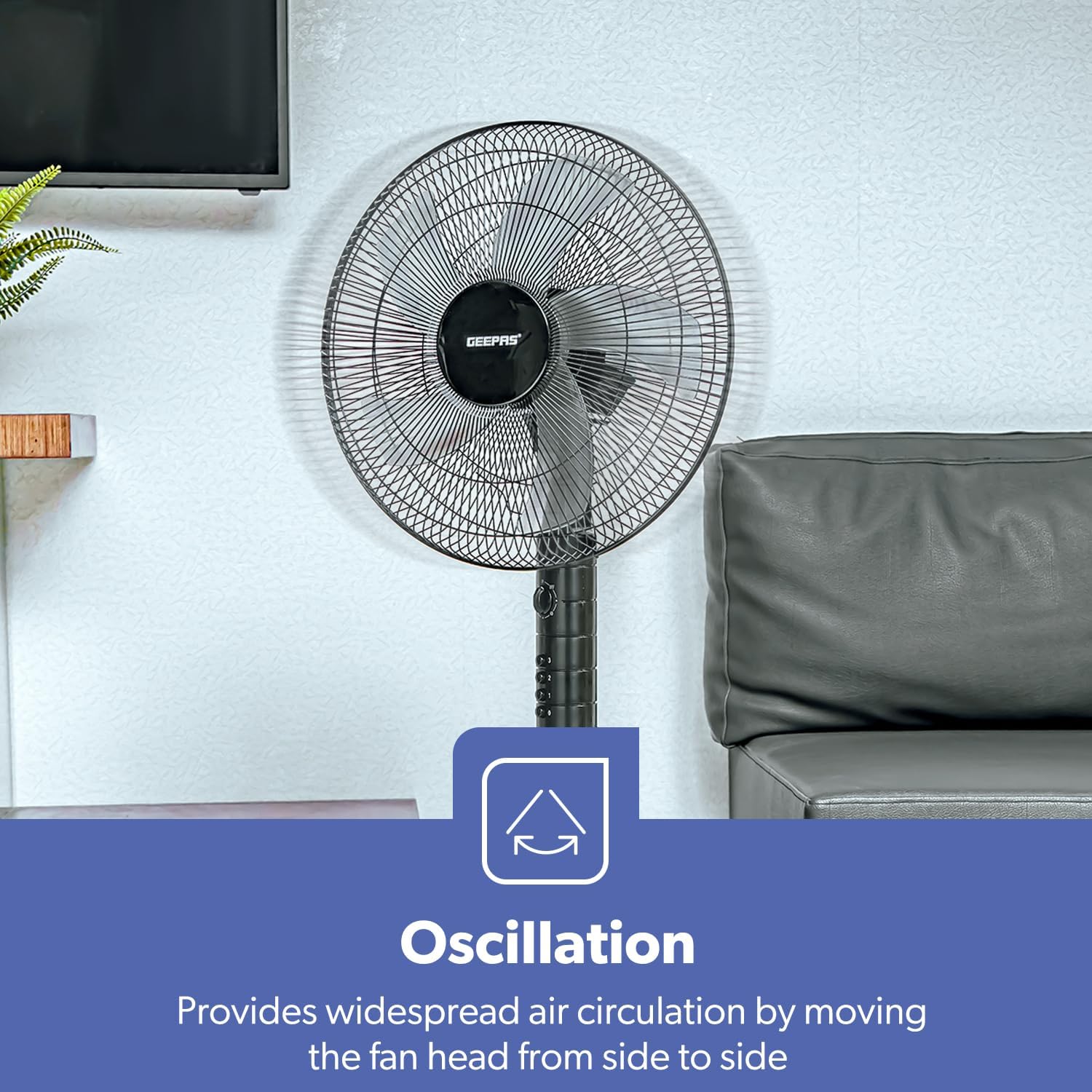 Beat the heat with the Geepas GF9488 16-inch Stand Fan, crafted for ultimate comfort and airflow. Featuring a quiet yet powerful motor, it offers three energy-efficient speed levels, making it suitable for any room—from bedrooms to offices.