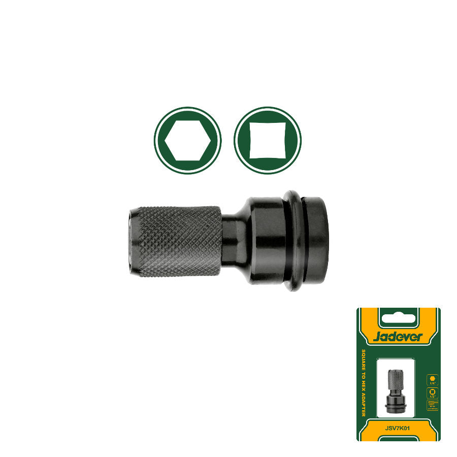 The JADEVER JDSV7K01 Socket Adapter is designed to seamlessly convert a 0.5-inch square socket into a 0.75-inch hex socket, making it compatible with various power tools such as drills, impact drivers, and wrenches.