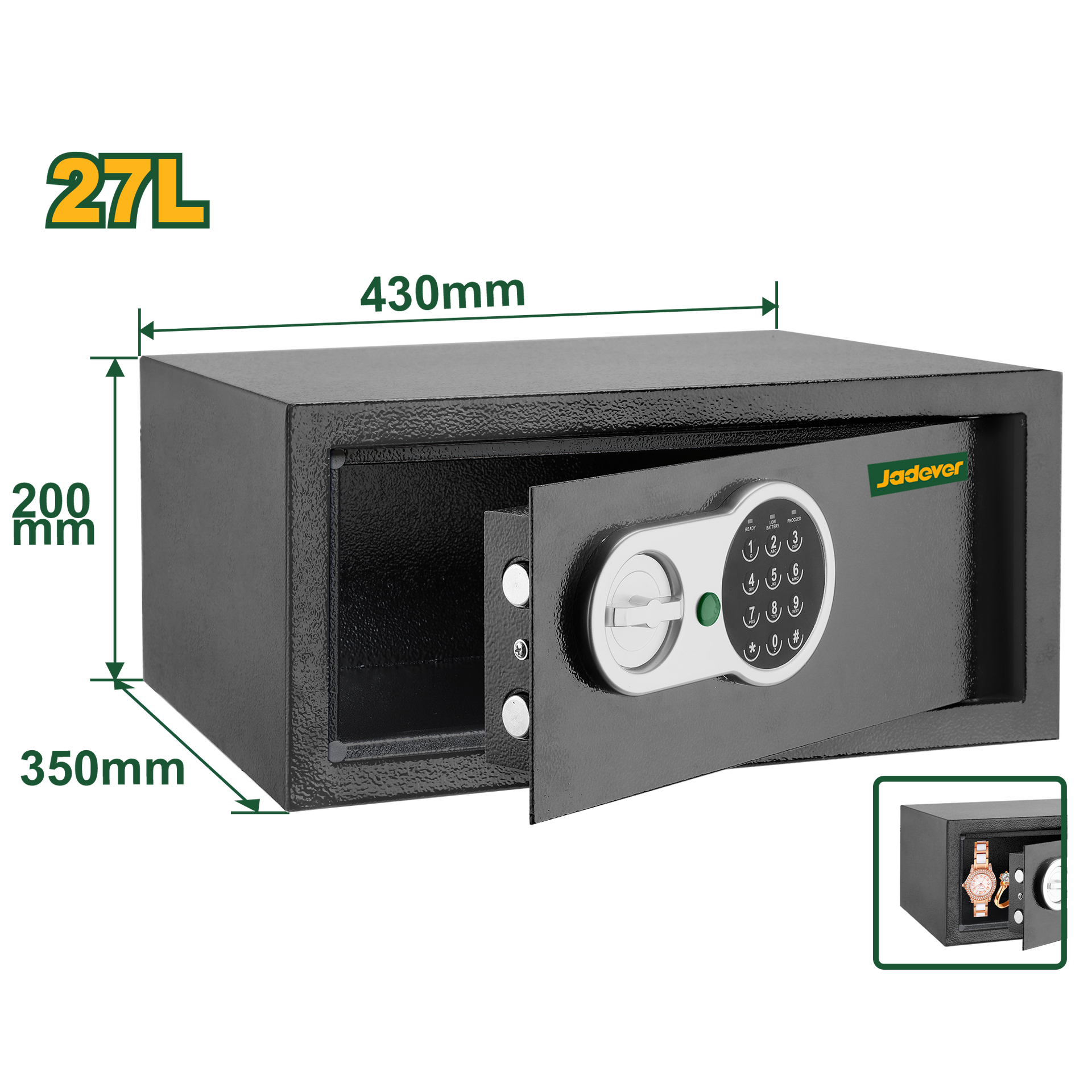 Spacious Yet Compact: 27L storage capacity, perfect for storing valuables securely.
