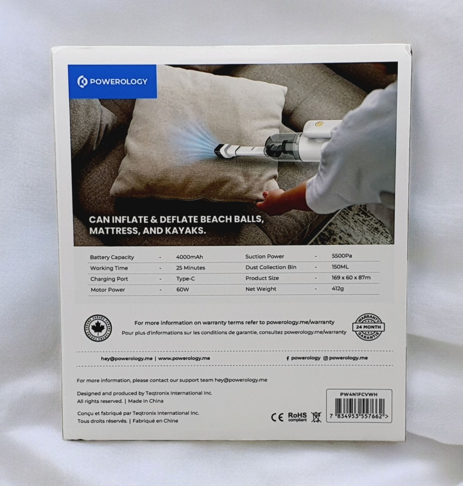 The Powerology 4-in-1 Handheld Vacuum, Blower & Inflator is your compact all-in-one cleaning and inflation tool. Lightweight and powerful, it’s perfect for both home and car use.