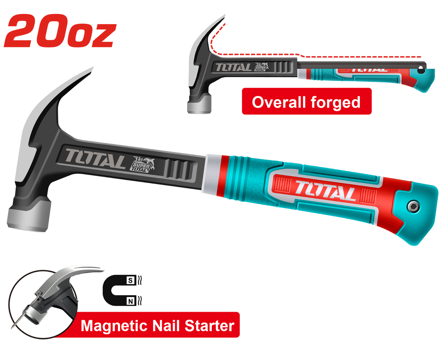 - TOTAL 560g Claw Hammer | 355mm with Magnetic Nail Holder (THCH61020L)