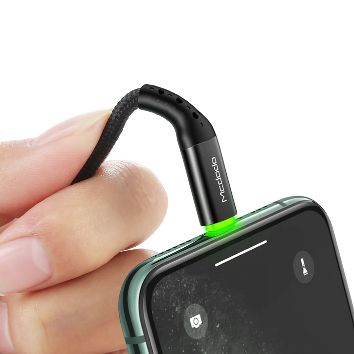 Experience the convenience and safety of the Mcdodo 1.2M iPhone Auto Disconnect cable in black. This innovative cable automatically stops charging your phone once it reaches 100%, preventing overcharging and extending your battery life.