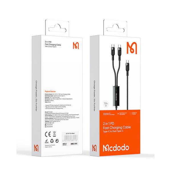 - Mcdodo 2in1 100W PD Type C to Dual Type C Charge Cable 1.2M - Black