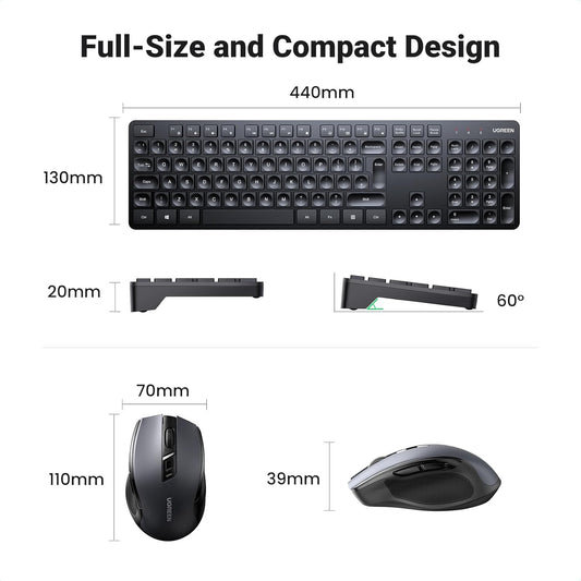 UGREEN MK006 Wireless Keyboard & Ergonomic Mouse Combo, Black