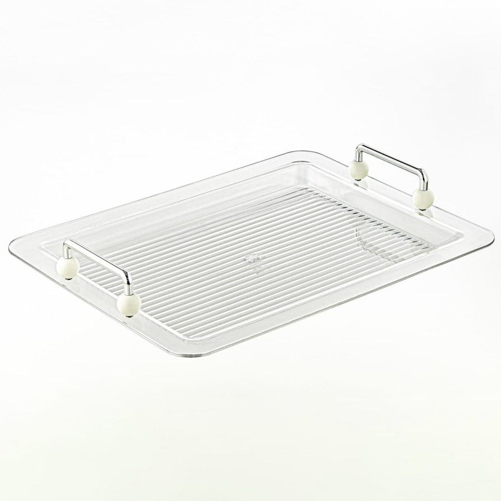 Almarjan 45cm acrylic tray in silver and white. Combines elegance, durability, and style for serving tea, coffee, or desserts beautifully.