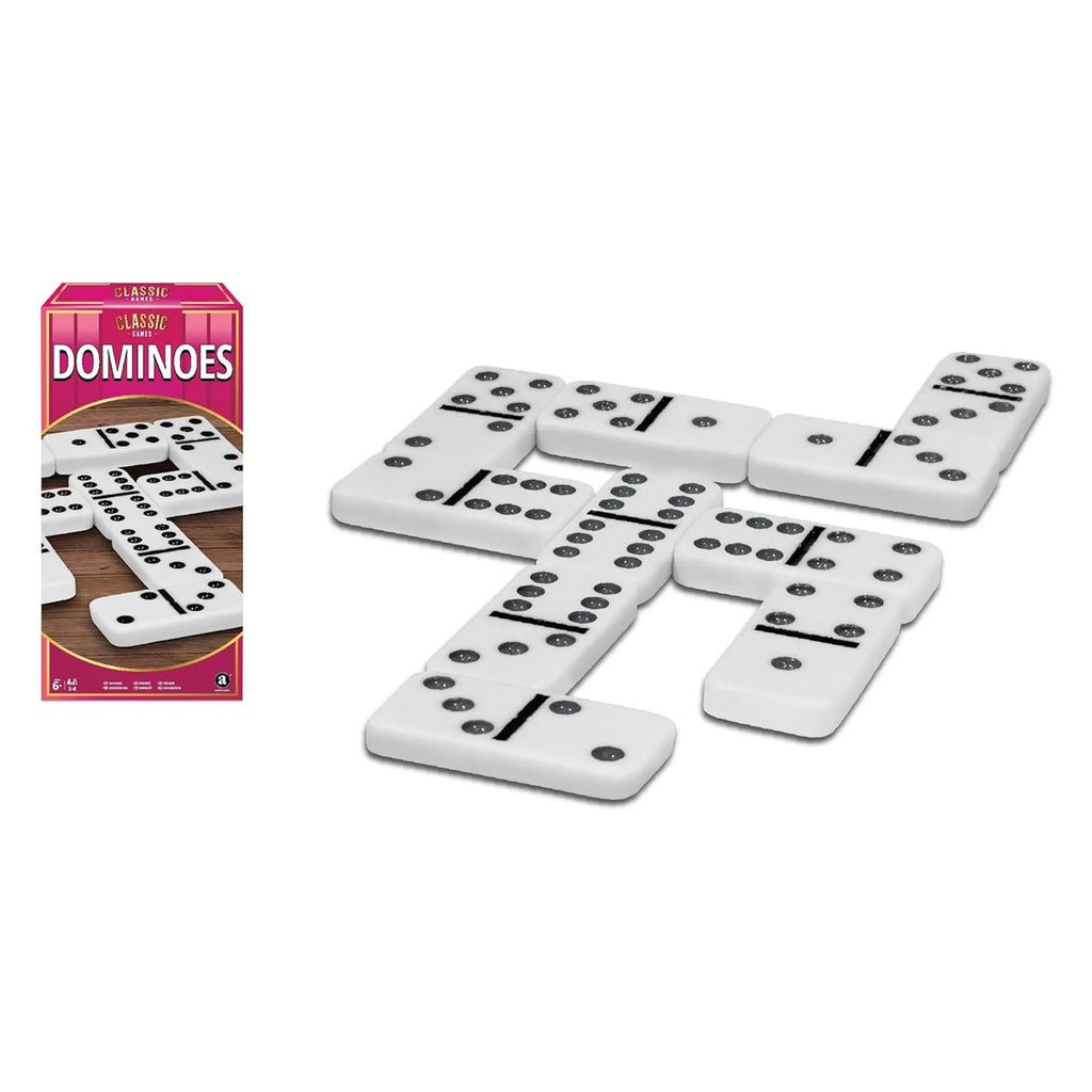 Embark on a journey of tactical tricks and strategic games with the Ambassador Classic Game Dominoes. Crafted with precision and entertainment, this set features high-quality domino tiles that promise hours of engaging games. The sturdy and smooth tiles are adorned with traditional black dots, ensuring easy visibility and a touch of classic charm.