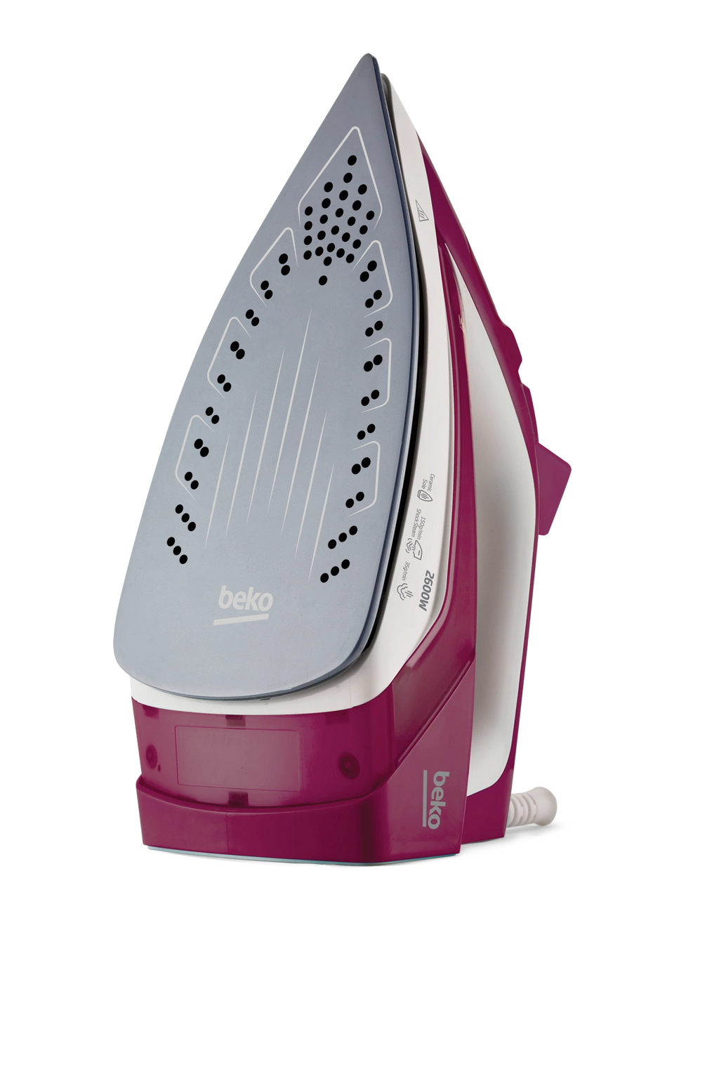 Beko's 2600W steam iron delivers professional-grade pressing power with advanced leak-proof technology that protects your fabrics from water stains. The integrated self-cleaning function removes mineral buildup and extends the iron's lifespan, ensuring consistent performance. Its ergonomic design and rapid heat-up capability make tackling large laundry loads efficient and effortless. The sleek purple finish combines style with functionality, while the powerful steam output handles everything from delicate silks to heavy cottons with precision. An essential tool for anyone seeking reliable, long-lasting garment care.
