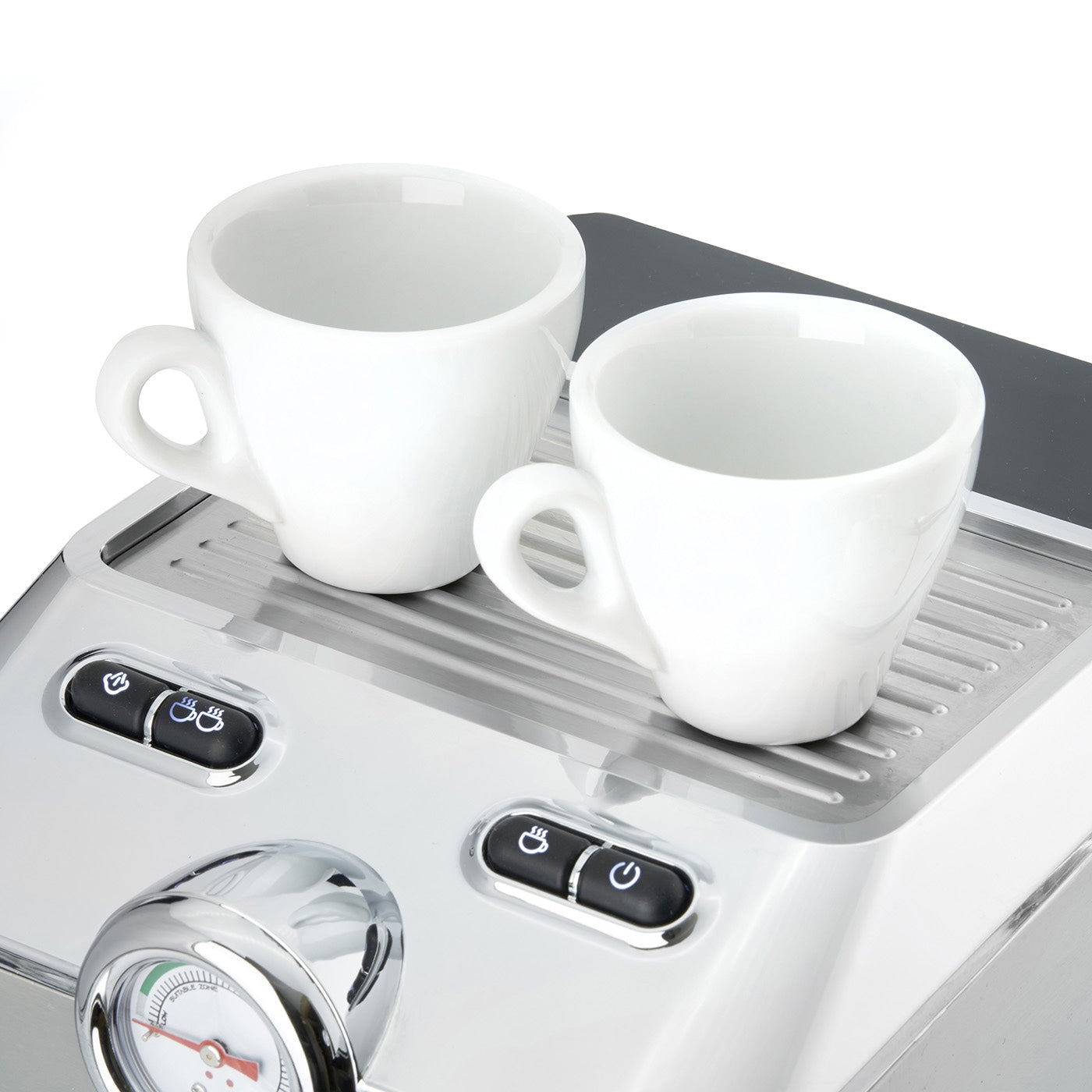 - Integrated cup warming tray for pre-warming of cups