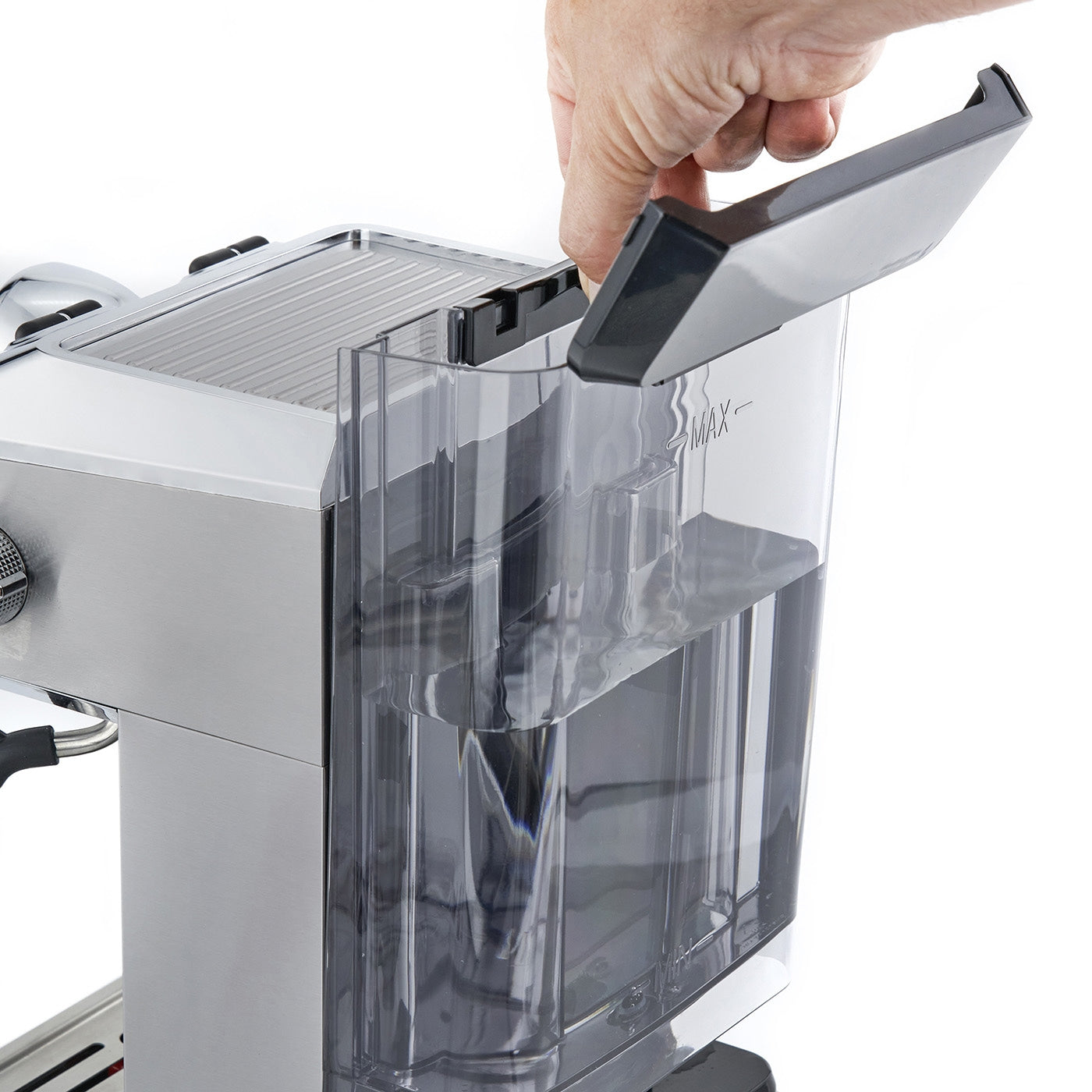 - Removable stainless steel drip tray with integrated float – for easy cleaning