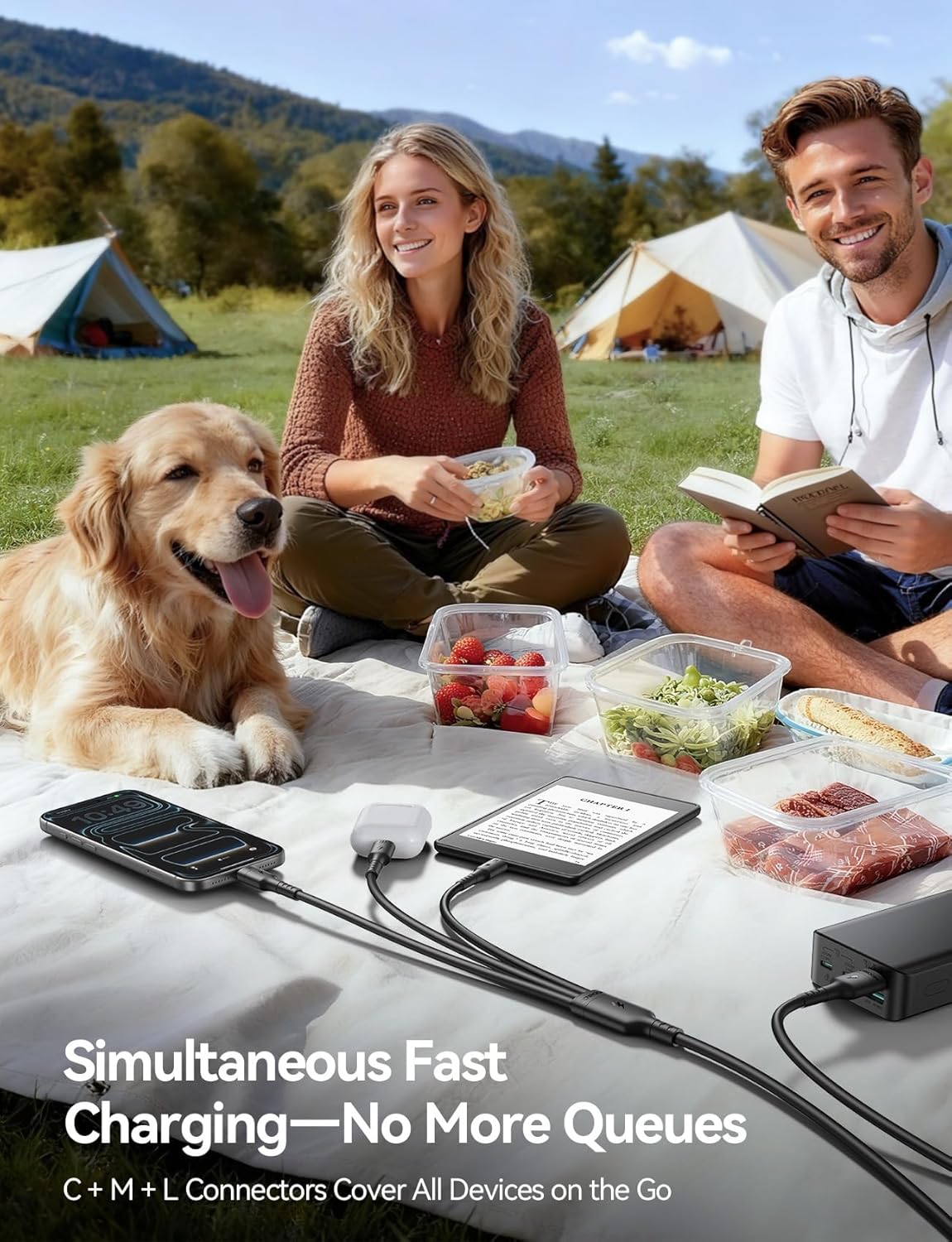 - 3-in-1 Multi-Connector Cable – One cable supports Type-C, Lightning, and Micro USB devices for universal charging and data transfer