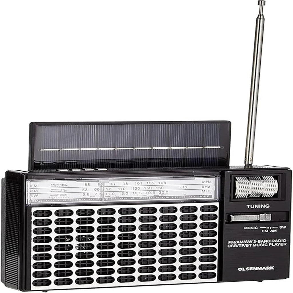 Order Olsenmark OMR1276 Portable Rechargeable Retro Radio with Bluetooth, USB, TF & Karaoke – 3-Band | Solar Charging | Black now, to get same-day delivery inside Amman, within 24 hours outside Amman and other regions.